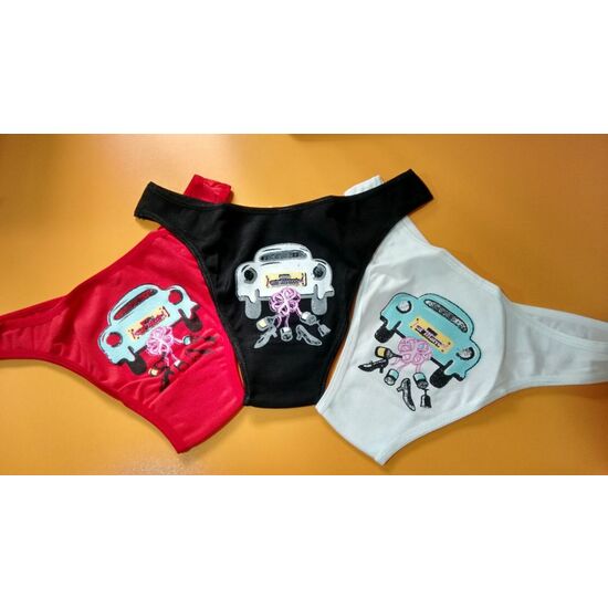 Divertida braguita sexy de algodón con la inscripción “JUST MARRIED” en la parte trasera. Por delante la braguita es lisa, y el corte es de tiro muy bajo. Por detrás tiene corte brasileño, ya que cubre un poco el trasero, pero sin llegar a ser tanga.