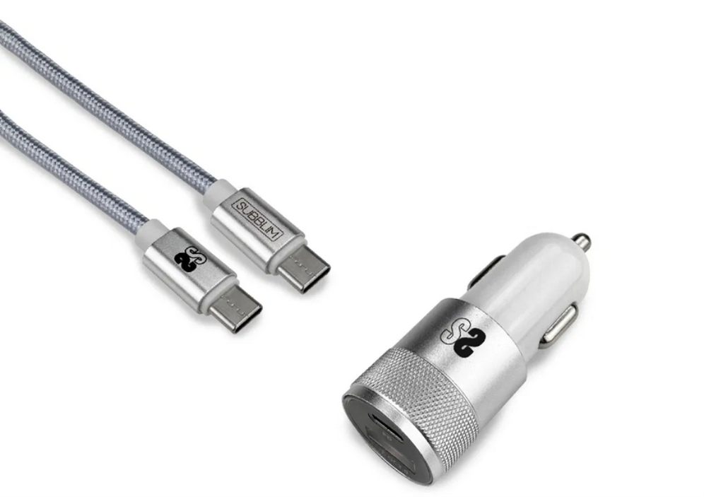 Cargador de coche de 2 puertos (USB-C y USB-A) que ha sido específicamente diseñado para smartphones y tabletas con Power Delivery para proporcionar la carga más rápida nunca vista de hasta 18W. Incluye un cable USB C reversible de altas prestaciones.PERMITE CARGA RÁPIDAUn cargador de coche de 2 puertos (USB-C y USB-A) que ha sido específicamente diseñado para smartphones y tabletas con Power Delivery para proporcionar la carga más rápida nunca vista de hasta 18W. Incluye un cable USB C reversible de altas prestaciones.CARGA DOS DISPOSITIVOS A LA VEZCon este cargador de coche con dos puertos USB C + USB A y cable incluido USB C reversible podrás mantener tus dispositivos siempre cargados de la forma más rápida y sencilla. El puerto USB-C de 18W dedicado con Power Delivery y un puerto USB A de 12W ofrecen una carga ultra rápida para los dos dispositivos conectados simultáneamente.CABLE DE CARGA Y TRANSFERENCIA DE DATOSGracias al cable de altas prestaciones con conector USB C podrás cargar de forma ultra rápida los dispositivos compatibles con esta tecnología. Además, con los conectores metálicos mate y cubierta exterior trenzada este cable cuenta con un aspecto que es a la vez elegante y moderno.Diseñado para soportar un uso intenso el cable USB C es idóneo para tu estilo de vida activo y móvil. Incluye un organizador de cable para llevarlo siempre recogido y protegido. Ha sido sometido a ensayos de dobladura de 90° hasta un total de 10.000 veces.