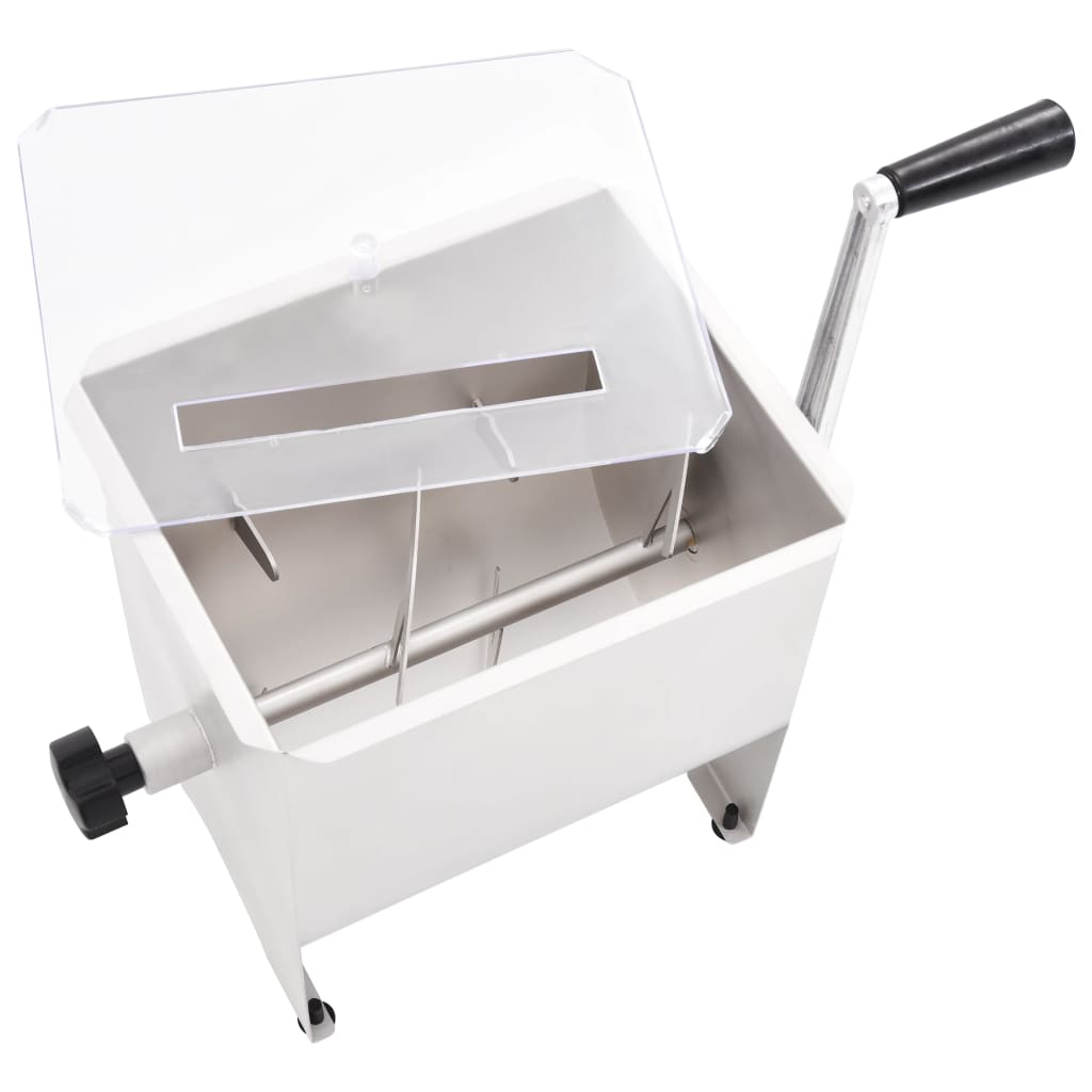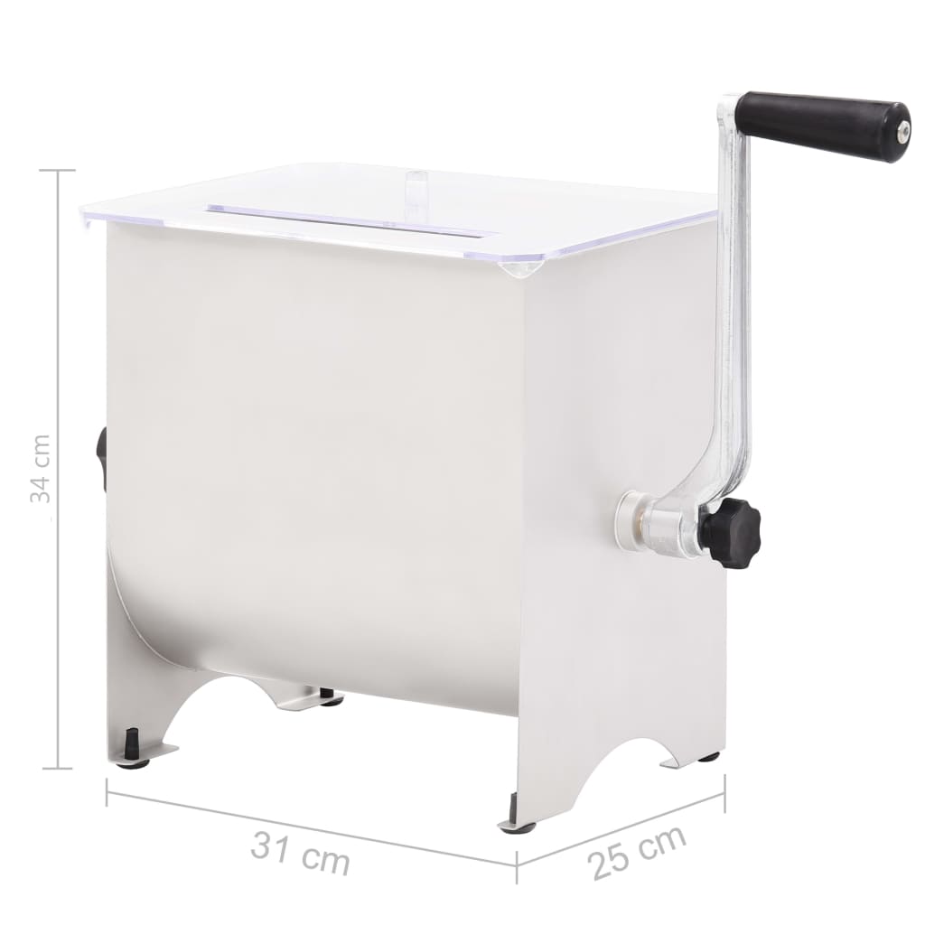 Este potente misturador de carne pode processar carne com até 5 kg e está equipado com um eixo de lâmina, com 4 lâminas, que dobra a carne sobre si mesma para garantir uma mistura uniforme dos temperos em toda a sua mistura de carne. A manivela grande e a tampa de plástico transparente permitem-lhe ver a carne a ser misturada, mantendo as mãos limpas e protegidas das lâminas. Feito de aço inoxidável de qualidade alimentar, o misturador de carne possui ainda uma construção robusta e durável.