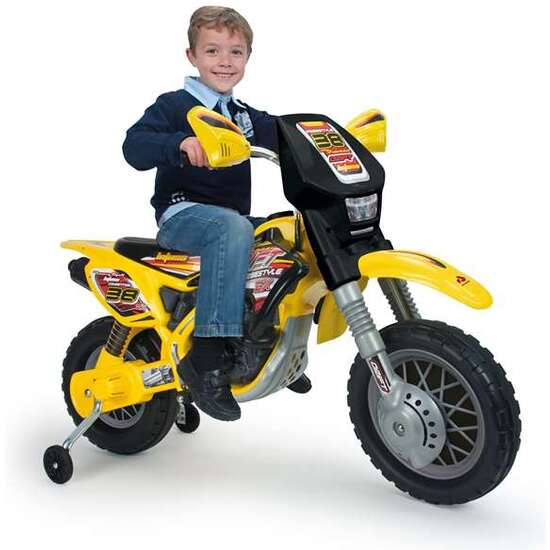 Moto Cross Thunder Max 12V Injusa. Edad minima recomendada 3a. Sí Montaje necesario. Sí Utiliza pilas. Tipo pilas Batería 6V. No Incluye pilas. No Emite sonidos. No Tiene luces. Idiomas caja ES|EN|FR. Idiomas instrucciones ES|EN|FR. Idioma producto Es. Contenido caja 12v. Número pilas 1